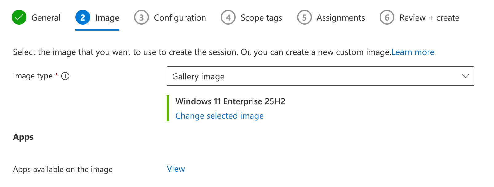 On the next tab, we’ll select the image to be used for our Cloud PC’s. You might select a custom image here, with your LOB apps already installed, but since I opted to use the preperation policy with an Intune app, I’ll select one of the gallery images here. In this case I don’t need any Office apps installed, so I’ll pick the Windows 11 25H2 version, without Office.