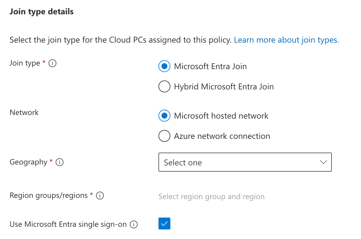 Next, we’ll set our required options for networking and using Entra single sign-on.