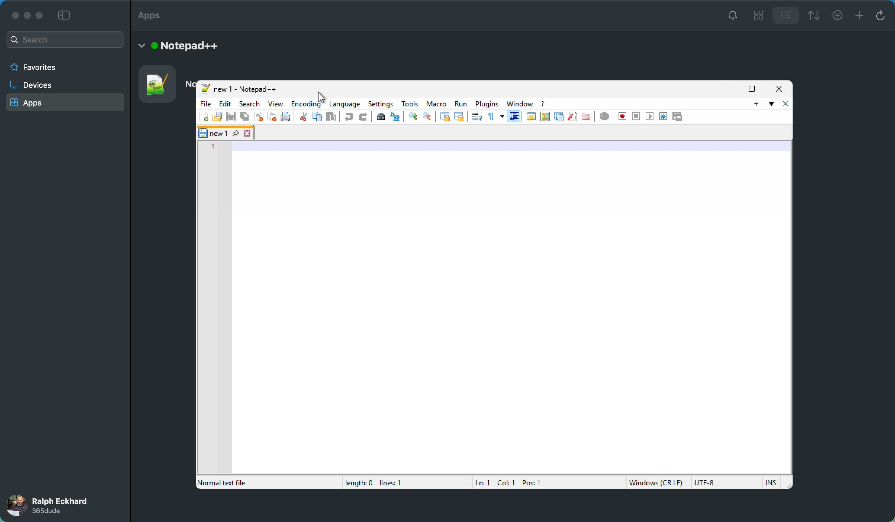 In this example, I’ll run Notepad++ (which is a Windows app) from the Windows App on my Mac, which makes it look like it’s running locally on my system.