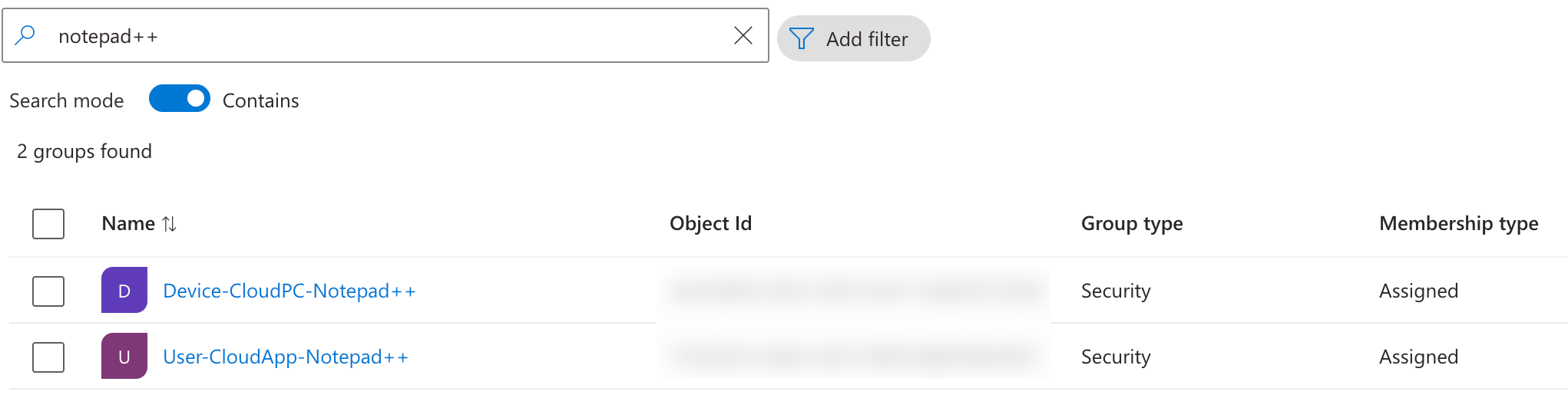 When we’re done, we now have the two groups in Entra ID: