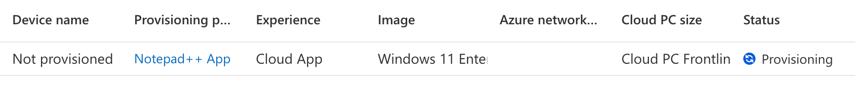 After finishing the wizard, we can go to the ‘All Cloud PC’s’ tab, and see that the platform has started provisioning the actual Cloud PC.